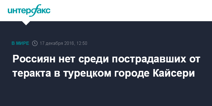 "По данным российского посольства в Анкаре, россиян среди пострадавших от теракта в турецком городе Кайсери нет", - говорится в сообщении.