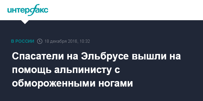 Москва. 18 декабря. INTERFAX.RU - На седловине Эльбруса с субботы находится российский альпинист, он не может самостоятельно спуститься и ждет помощи спасателей, сообщил "Интерфаксу" оперативный дежурный Эльбрусского высокогорного поисково-спасательного отряда (ЭВПСО) в воскресенье.
