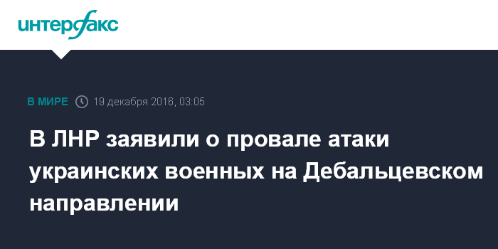 В ЛНР заявили о провале атаки украинских военных на Дебальцевском направлении