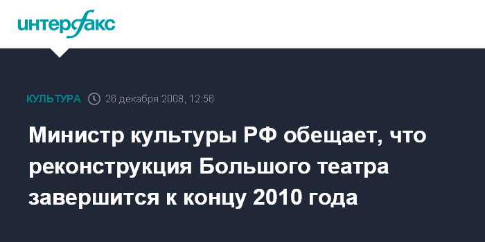 Министр культуры РФ обещает, что реконструкция Большого театра завершится к концу 2010 года