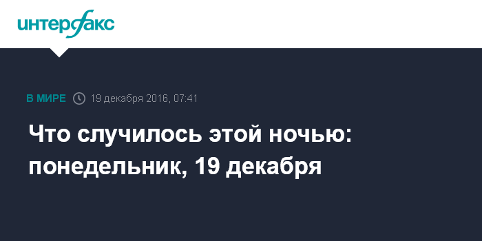 Москва. 19 декабря. INTERFAX.RU - Краткая сводка событий, произошедших к утру: