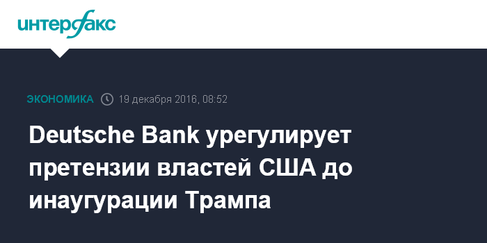 Deutsche Bank урегулирует претензии властей США до инаугурации Трампа