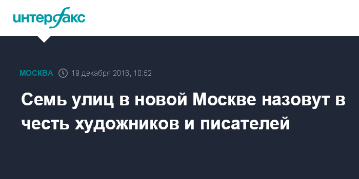 Семь улиц в новой Москве назовут в честь художников и писателей