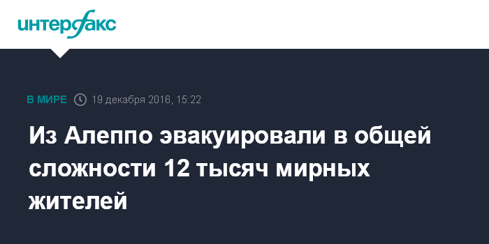 Из Алеппо эвакуировали в общей сложности 12 тысяч мирных жителей