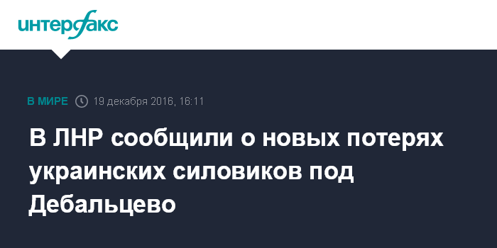 В ЛНР сообщили о новых потерях украинских силовиков под Дебальцево