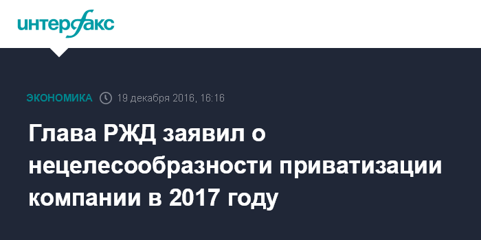 Глава РЖД заявил о нецелесообразности приватизации компании в 2017 году