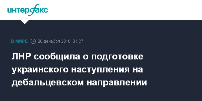 Москва. 20 декабря. INTERFAX.RU - Официальный представитель Народной милиции самопровозглашенной Луганской Народной Республики Андрей Марочко сообщил, что подразделения украинской армии готовят наступление на позиции ополченцев в районе Дебальцево.