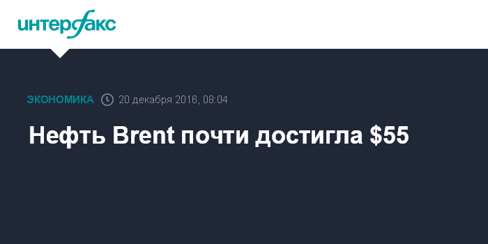 Цена февральских фьючерсов на нефть Brent на лондонской бирже ICE Futures к 7:55 по Москве опустилась на 3 цента до $54,89 за баррель.