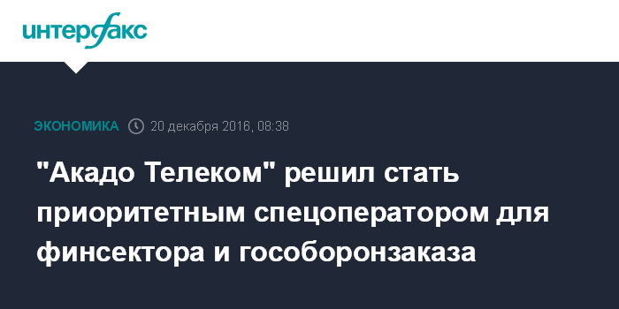 "Акадо Телеком" решил стать приоритетным спецоператором для финсектора и гособоронзаказа