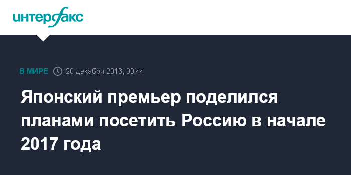 Японский премьер поделился планами посетить Россию в начале 2017 года