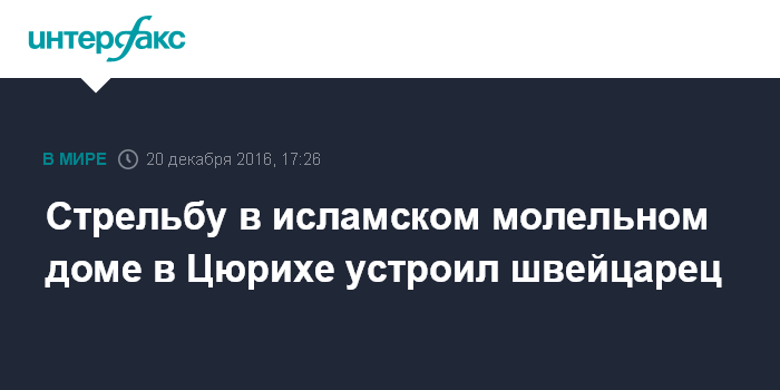 Стрельбу в исламском молельном доме в Цюрихе устроил швейцарец