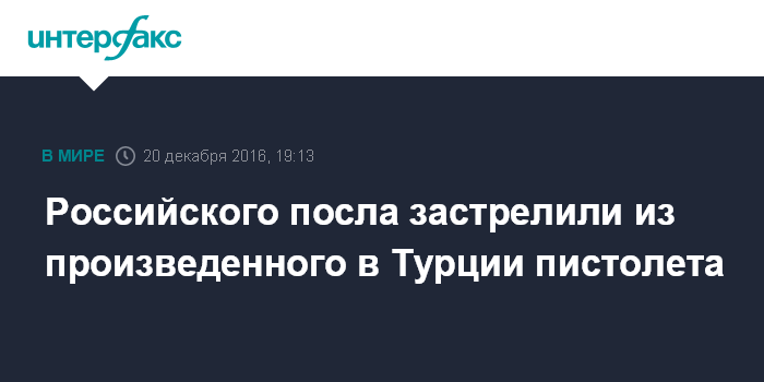 Москва. 20 декабря. INTERFAX.RU - Посол России в Анкаре Андрей Карлов был убит из пистолета марки Canik, которая производится в Турции, сообщают во вторник турецкие СМИ.