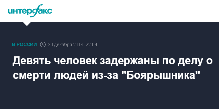 Москва. 20 декабря. INTERFAX.RU - По делу о гибели десятков жителей Иркутска от отравления косметическим лосьоном "Боярышник" задержаны уже девять человек - индивидуальные предприниматели и их сотрудники, занимавшиеся мелкооптовой и розничной продажей этой жидкости, говорится в докладе о расследовании этого дела.
