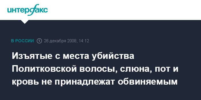 Москва. 26 декабря. INTERFAX.RU - Следы ДНК, обнаруженные на месте преступления, не имеют отношения к подсудимым, обвиняемым по делу об убийстве обозревателя "Новой газеты" Анны Политковской, считают эксперты.