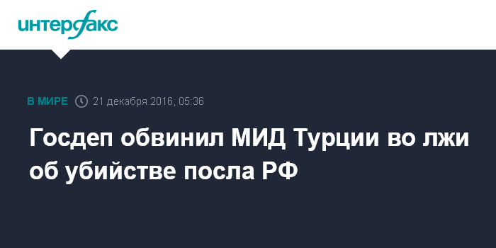 Госдеп обвинил МИД Турции во лжи об убийстве посла РФ