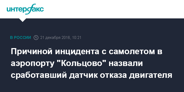 Причиной инцидента с самолетом в аэропорту "Кольцово" назвали сработавший датчик отказа двигателя