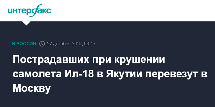 Пострадавших при крушении самолета Ил-18 в Якутии перевезут в Москву