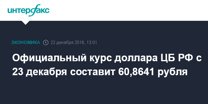 Официальный курс доллара ЦБ РФ с 23 декабря составит 60,8641 рубля