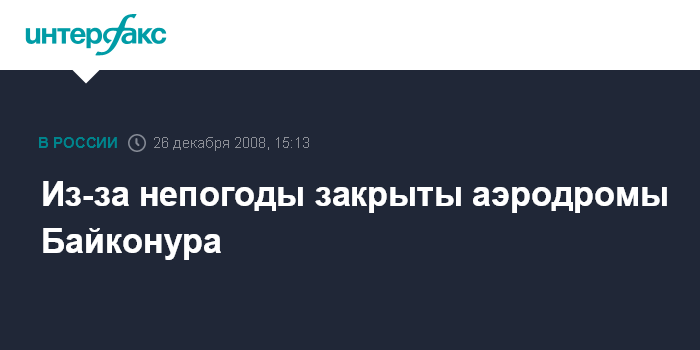 Москва. 26 декабря. INTERFAX.RU - На Байконуре в пятницу из-за непогоды закрыты аэродромы "Крайний" и "Юбилейный", сообщил агентству "Интерфакс" источник на космодроме.