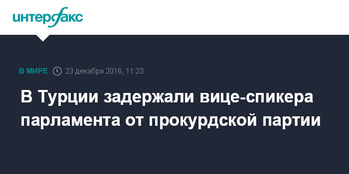 Москва. 23 декабря. INTERFAX.RU - Турецкая полиция задержала вице-спикера парламента от прокурдской Демократической партии народов (ДПН) Первин Булдан, сообщает в пятницу агентство Associated Press со ссылкой на официального представителя партии Айхана Билгена.