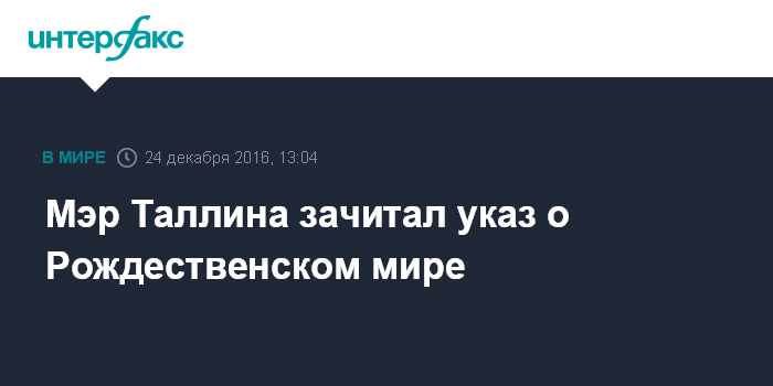 Москва. 24 декабря. INTERFAX.RU - В столице Эстонии в субботу провозглашен Рождественский мир.