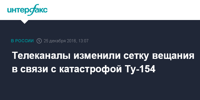 Телеканалы изменили сетку вещания в связи с катастрофой Ту-154