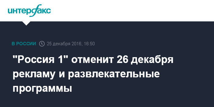 "Россия 1" отменит 26 декабря рекламу и развлекательные программы