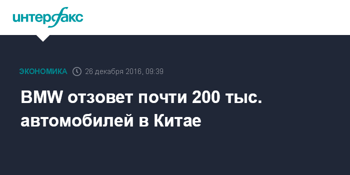 BMW отзовет почти 200 тыс. автомобилей в Китае
