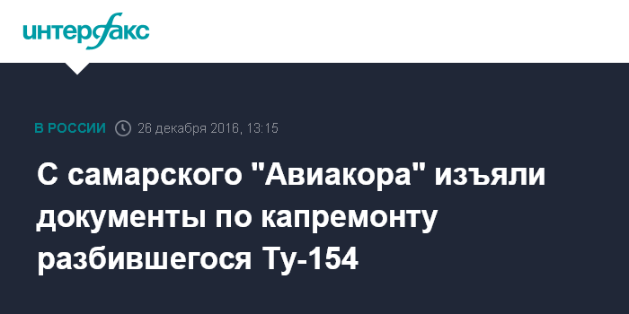 С самарского "Авиакора" изъяли документы по капремонту разбившегося Ту-154