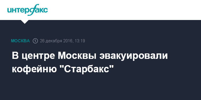 Москва. 26 декабря. INTERFAX.RU - Кофейню "Старбакс" эвакуировали в центре Москвы из-за подозрительного пакета, сообщили "Интерфаксу" очевидцы.