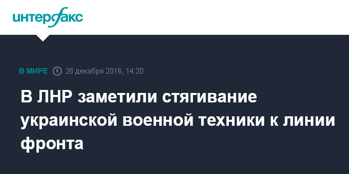 Москва. 26 декабря. INTERFAX.RU - Вооруженные силы Украины продолжают наращивать военный потенциал своих подразделений у линии соприкосновения в Донбассе, заявил представитель Народной милиции самопровозглашенной Луганской народной республики Андрей Марочко.