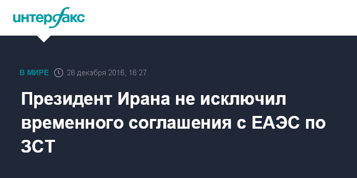 Москва. 26 декабря. INTERFAX.RU - Иран и ЕАЭС могут заключить временное соглашение, которое приведет к созданию зоны свободной торговли, заявил президент Армении Серж Саргсян в ходе заседания Высшего Евразийского экономического совета (ВЕЭС).