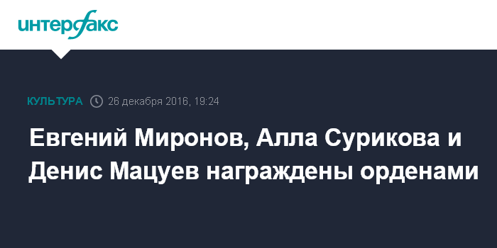 Евгений Миронов, Алла Сурикова и Денис Мацуев награждены орденами
