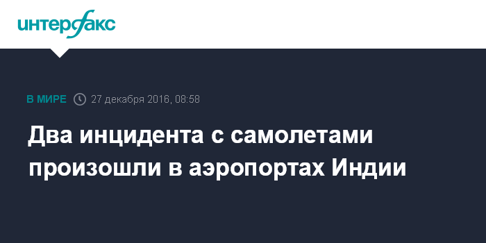 Ранее телекомпания сообщила о том, что в аэропорту Гоа авиалайнер компании Jet Airways при посадке выкатился за переделы ВПП, у него подломилась передняя стойка шасси, и его развернуло на 360 градусов. Пассажиры были эвакуированы по надувным трапам, легкие ранения получили, по различным данным, от 12 до 15 человек.