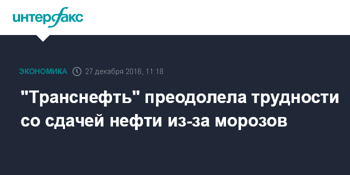"Транснефть" преодолела трудности со сдачей нефти из-за морозов