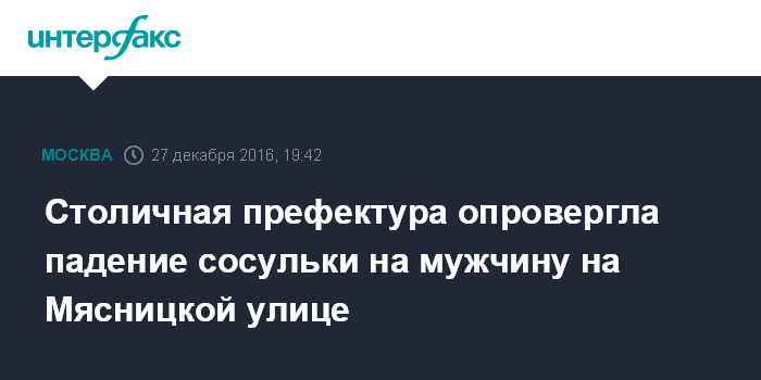 Столичная префектура опровергла падение сосульки на мужчину на Мясницкой улице
