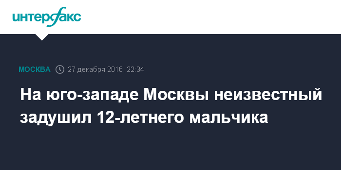 На юго-западе Москвы неизвестный задушил 12-летнего мальчика