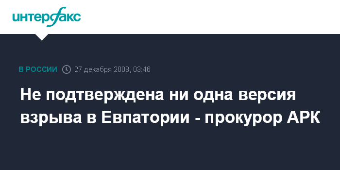 Киев. 27 декабря. ИНТЕРФАКС-УКРАИНА - Ни одна из версий взрыва в жилом доме в Евпатории пока не получила достаточного подтверждения экспертов, сообщил в комментарии "Зеркалу недели" прокурор Крыма Владимир Бойко в субботу.