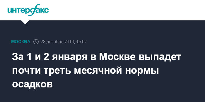 За 1 и 2 января в Москве выпадет почти треть месячной нормы осадков