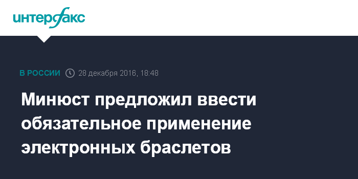 Москва. 28 декабря. INTERFAX.RU - Минюст предложил ввести безальтернативное применение электронных браслетов к подследственным, содержащимся под домашним арестом, во избежание злоупотреблений со стороны сотрудников ФСИН.