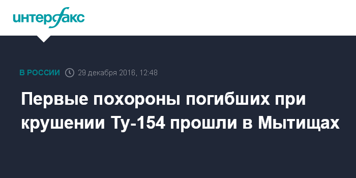 Первые похороны погибших при крушении Ту-154 прошли в Мытищах