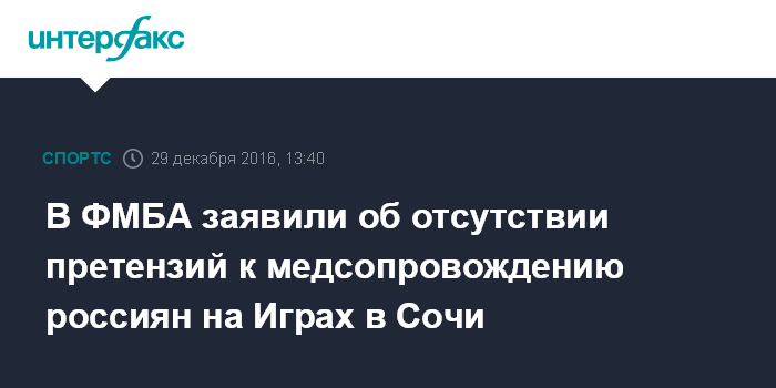 В ФМБА заявили об отсутствии претензий к медсопровождению россиян на Играх в Сочи