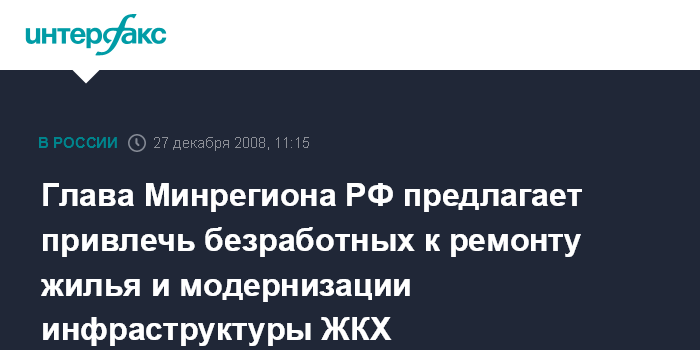 Глава Минрегиона РФ предлагает привлечь безработных к ремонту жилья и модернизации инфраструктуры ЖКХ
