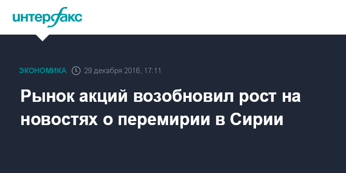 Рынок акций возобновил рост на новостях о перемирии в Сирии