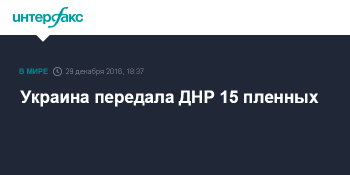 Москва. 29 декабря. INTERFAX.RU - Украинская сторона в одностороннем порядке передала властям самопровозглашенной Донецкой народной республики 15 пленных.