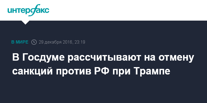 В Госдуме рассчитывают на отмену санкций против РФ при Трампе
