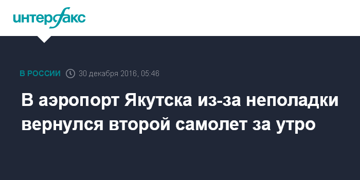 В аэропорт Якутска из-за неполадки вернулся второй самолет за утро