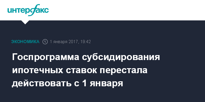 Москва. 1 января. INTERFAX.RU - С 1 января 2017 года перестала действовать госпрограмма субсидирования ставок по ипотечным кредитам на покупку жилья в новостройках.