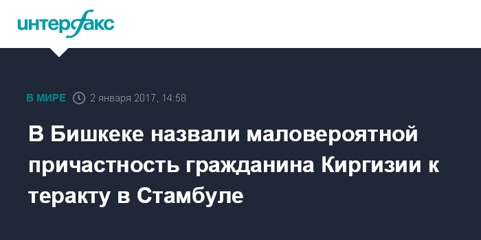 Москва. 2 января. INTERFAX.RU - МИД Киргизии проверяет информацию о возможной причастности киргизского гражданина к теракту в ночном клубе в Стамбуле.