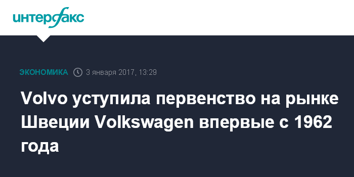 Volvo уступила первенство на рынке Швеции Volkswagen впервые с 1962 года